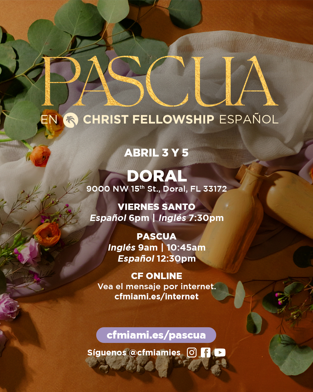 También puedes disfrutar del mensaje en inglés y español por internet en nuestra página web, la aplicación CF Miami, Facebook Live y YouTube. Síguenos @cfmiami y @cfmiamies en todas las redes sociales.