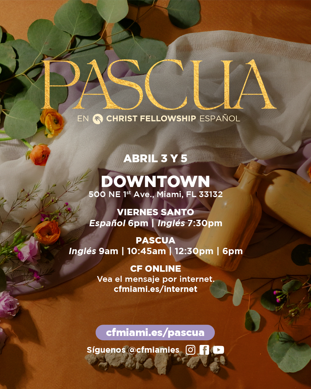 También puedes disfrutar del mensaje en inglés y español por internet en nuestra página web, la aplicación CF Miami, Facebook Live y YouTube. Síguenos @cfmiami y @cfmiamies en todas las redes sociales.