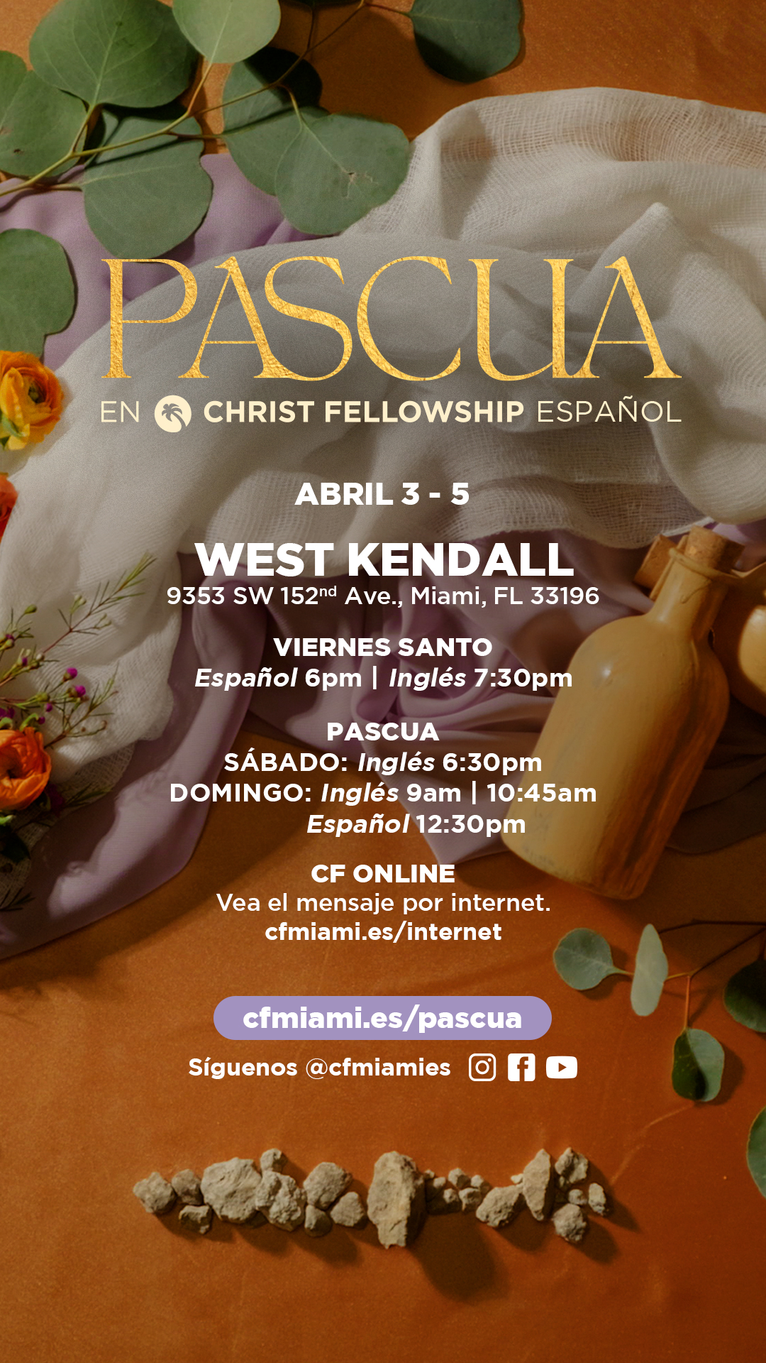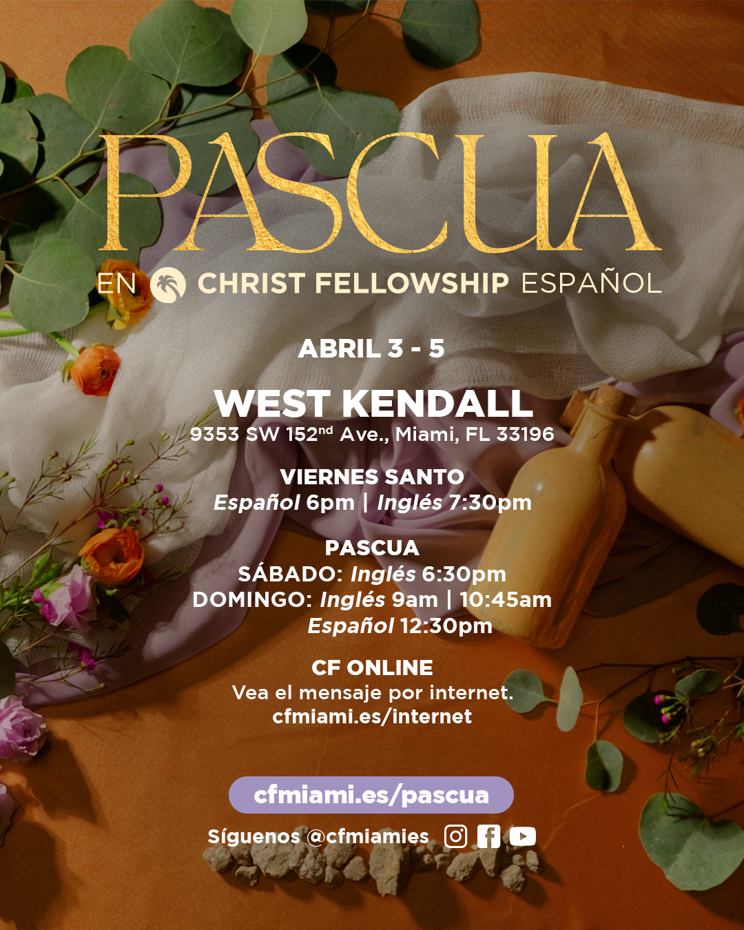 También puedes disfrutar del mensaje en inglés y español por internet en nuestra página web, la aplicación CF Miami, Facebook Live y YouTube. Síguenos @cfmiami y @cfmiamies en todas las redes sociales.